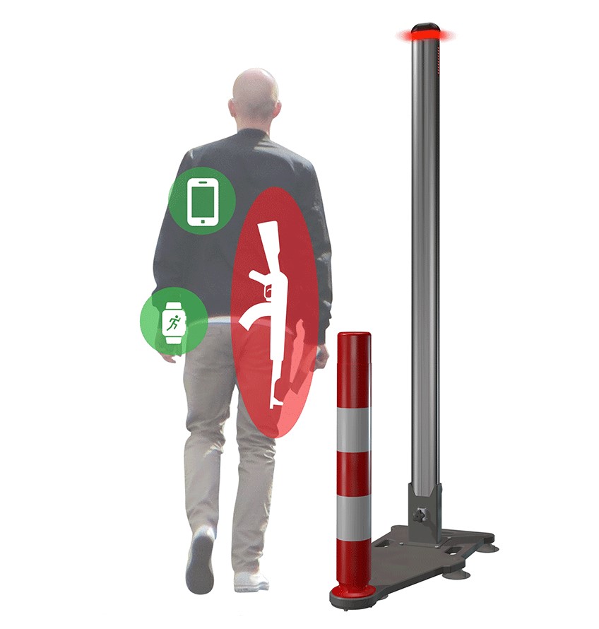 Sistemas de deteção de armas para eventos, podem ser fixos ou amovíveis.